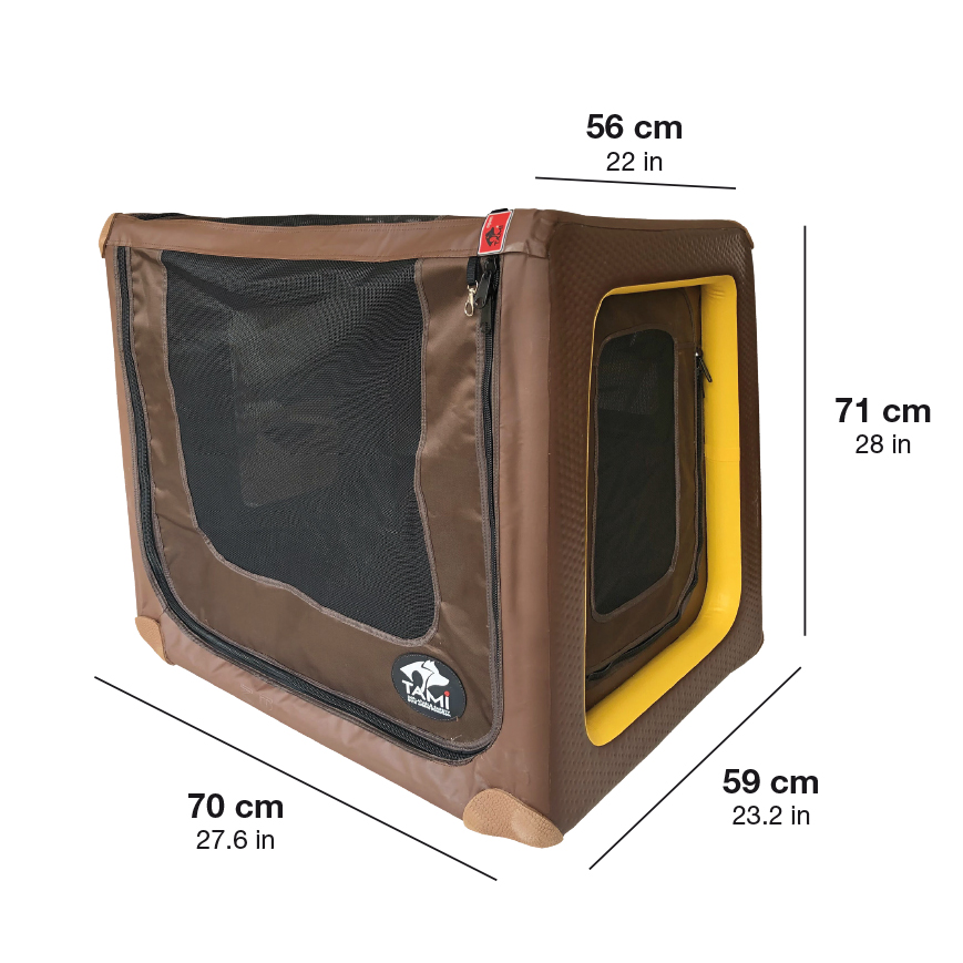 Die Firma SPORT-VIBRATIONS hat uns eine TAMI Backseat M Box empfohlen. Diese ist ein Leichtgewicht, hat zwei Einstiegsmöglichkeiten, ist aufblasbar, faltbar, gemütlich und super dekorativ. Fiona kann damit während der Fahrt sicher reisen und auch wenn wir mal mit dem Flugzeug fliegen, können wir diese Box nutzen.