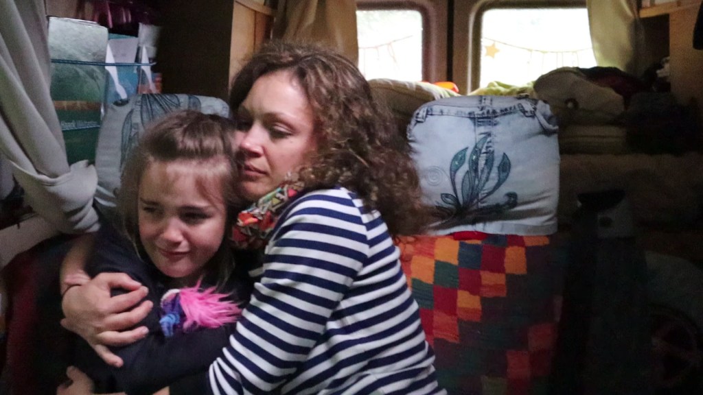 Wir sind viele Menschen auf kleinem Raum. Einmal ist unser Kind auch schon aus dem Auto gefallen. Es ist eine Mischung an sich aneinander reiben, über die Sitze kriechen und nicht rankommen, wenn die Betten ausgebreitet sind.