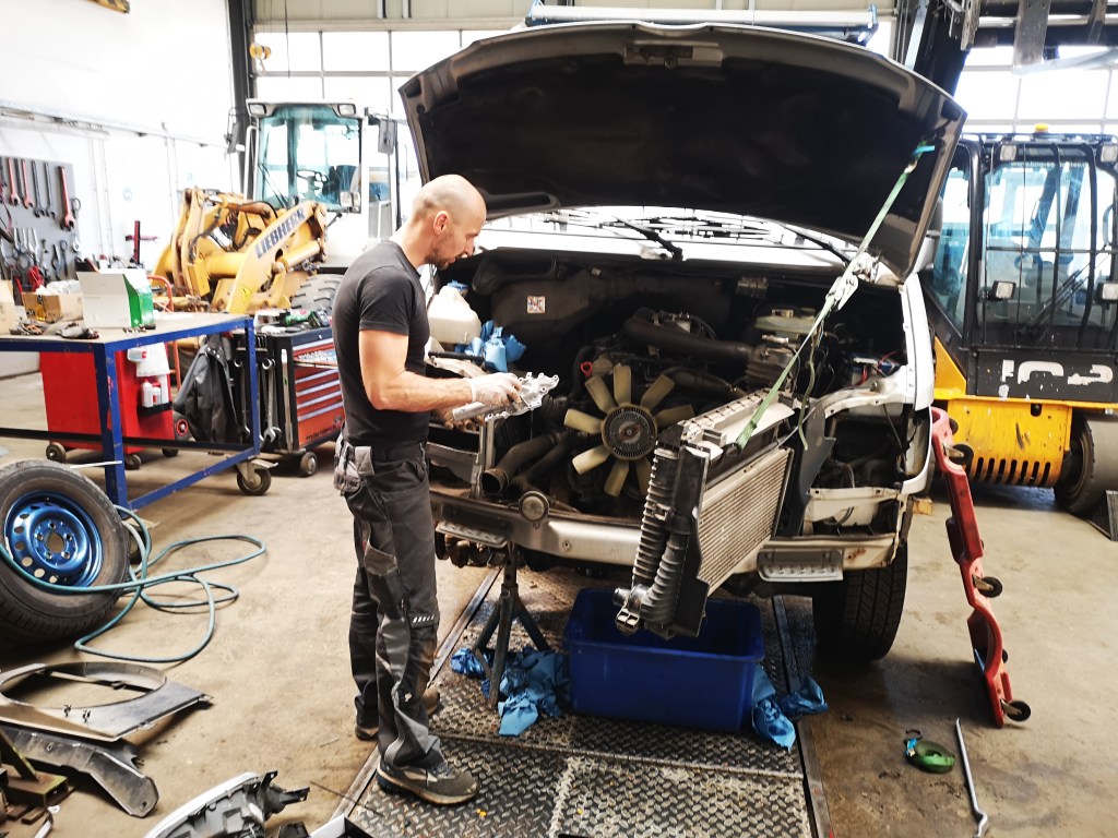 Da unsere Karosserie schon etwa 15 Jahre gedient hatte, hatte diese auch eine kleine oder größere Roststellen. Den Rost haben wir gründlich abgeschliffen, mit Rostumwandler behandelt und grundiert. Nun mussten wir die Grundierung irgendwie versiegeln, so dass es uns optisch auch gefällt.