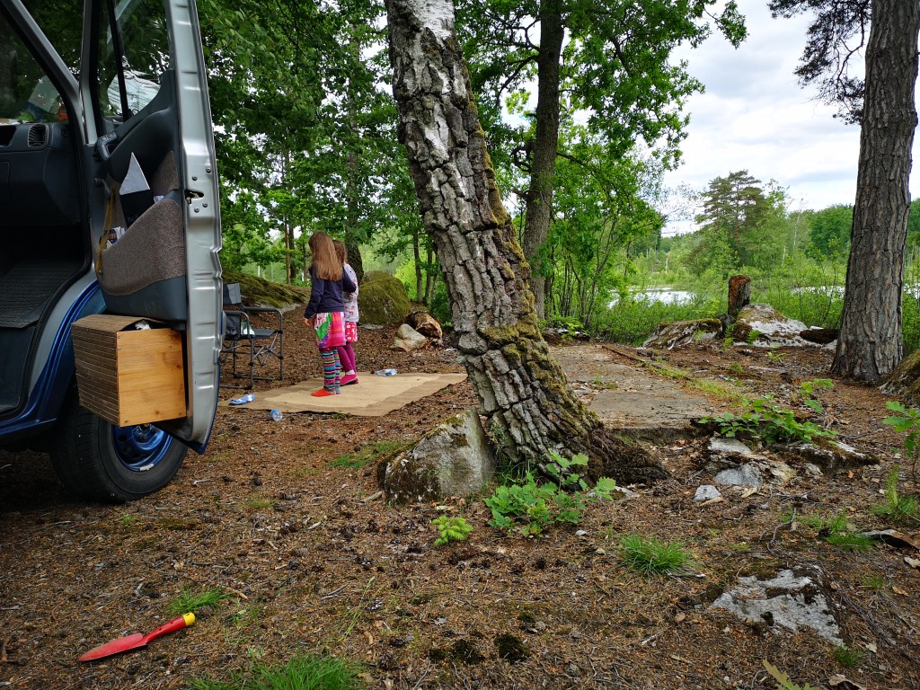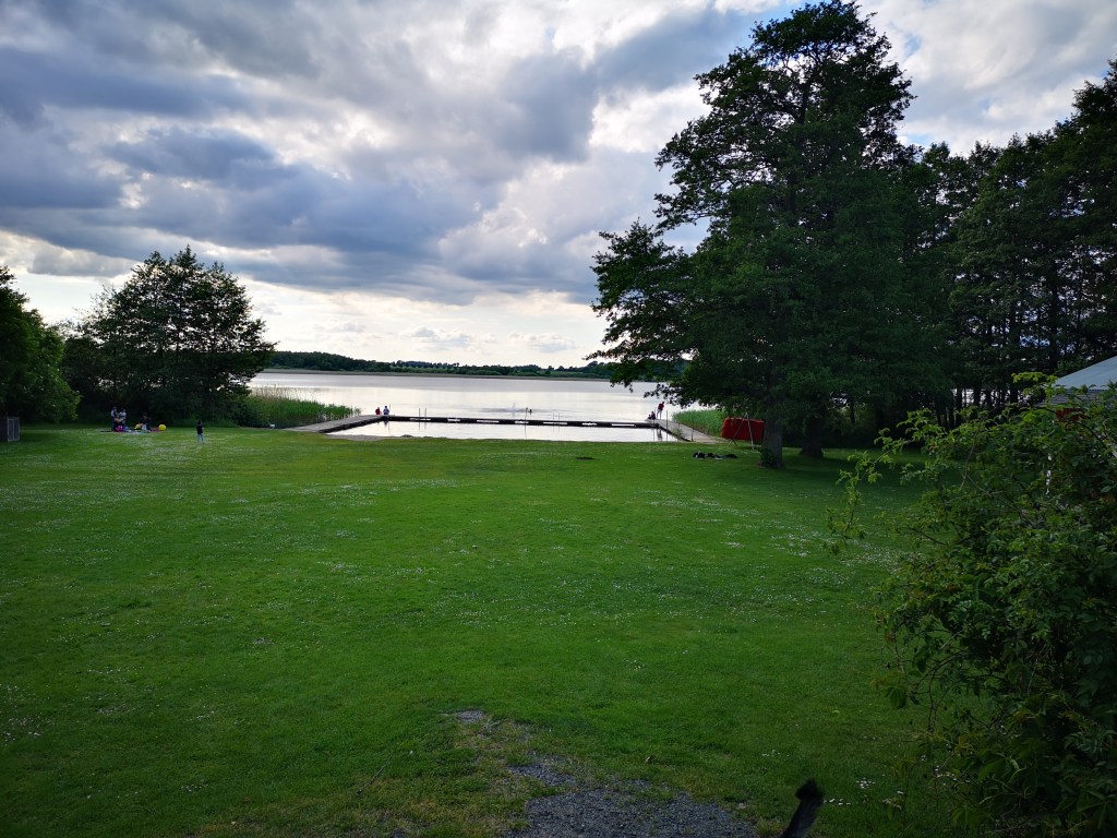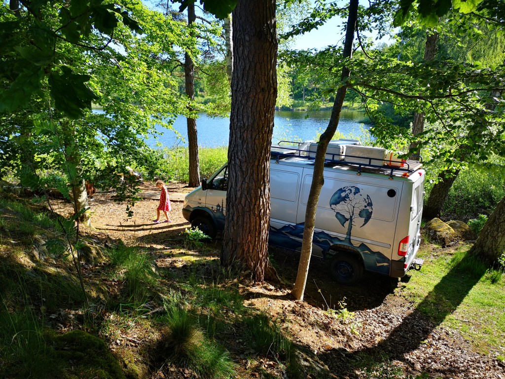 Mit Anlaufschwierigkeiten und Verzögerung begann unsere Reise Richtung Schweden. Eine Testfahrt blieb uns -dank Corona- verwehrt. Am 8. Juni 2020 ging es dann endgültig los nach Rostock. Mit der Fähre sind wir nach Trelleborg gefahren. Nach der Ankunft sind wir weitere 1,5 Stunden Fahrt auf sich genommen und einen See zum Nächtigen angesteuert. Am nächsten Tag stand nämlich Remote-Arbeiten auf dem Programm, also sind wir für einen Tag geblieben.